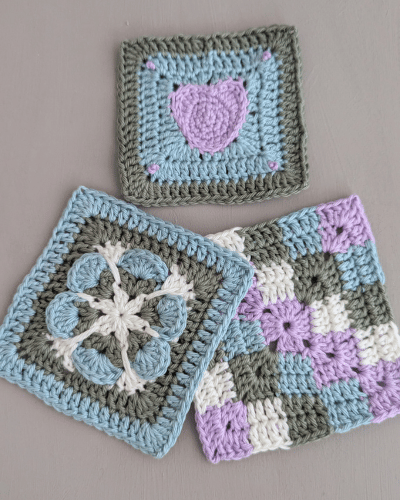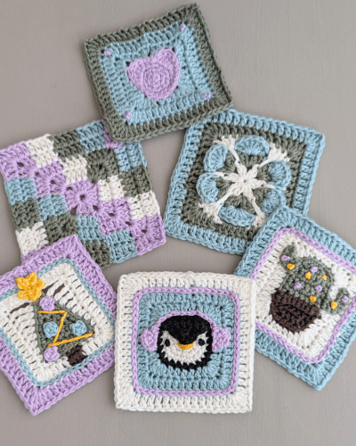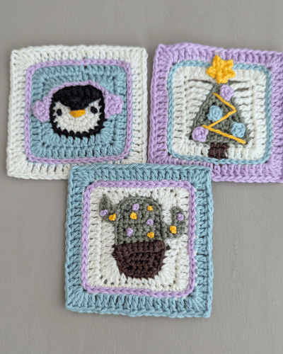 Bisher habe ich also schon 6 verschiedene Grannys nachgehäkelt. Es gibt neutrale Designs, die du durchaus auch für andere Gelegenheiten nutzen kannst, es gibt winterliche und weihnachtliche Motive. Und somit, denke ich, ist für jeden etwas dabei.