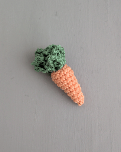 • Für die kleine Möhre brauchst du noch etwas orangefarbenes und grünes Garn.