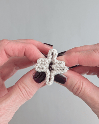 In der nächsten Rd häkelst du die Arme aus Popcorn Maschen.