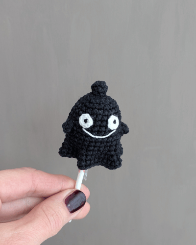 Alle Fäden vernähen. Stülpe Lollita auf einen Lolli, denn da fühlt sie sich am wohlsten ;), denn auch Lollita ist ein echtes Lolli-Gespenst.