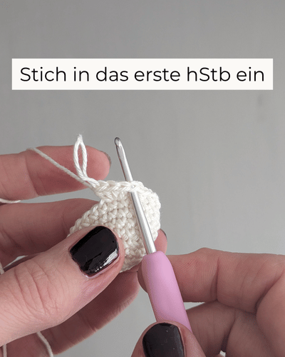 Faden abschneiden, abketten und die Rd unsichtbar beenden. Fäden vernähen.
