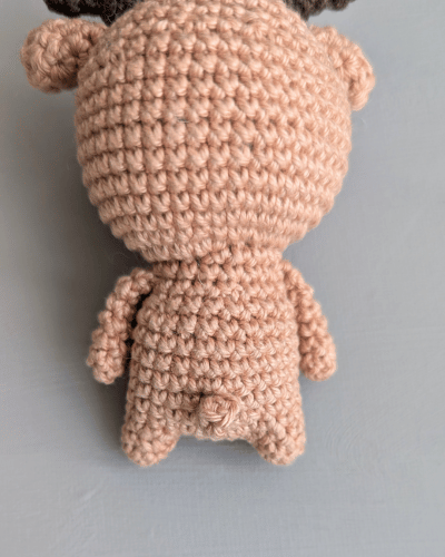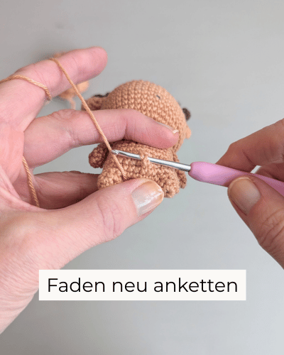 Die Arme nähst du seitlich, eine Runde unterhalb des Kopfes, an den Körper.