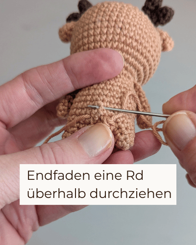 Nähe das Geweih jeweils seitlich an den Kopf (über 15. und 14. Rd)